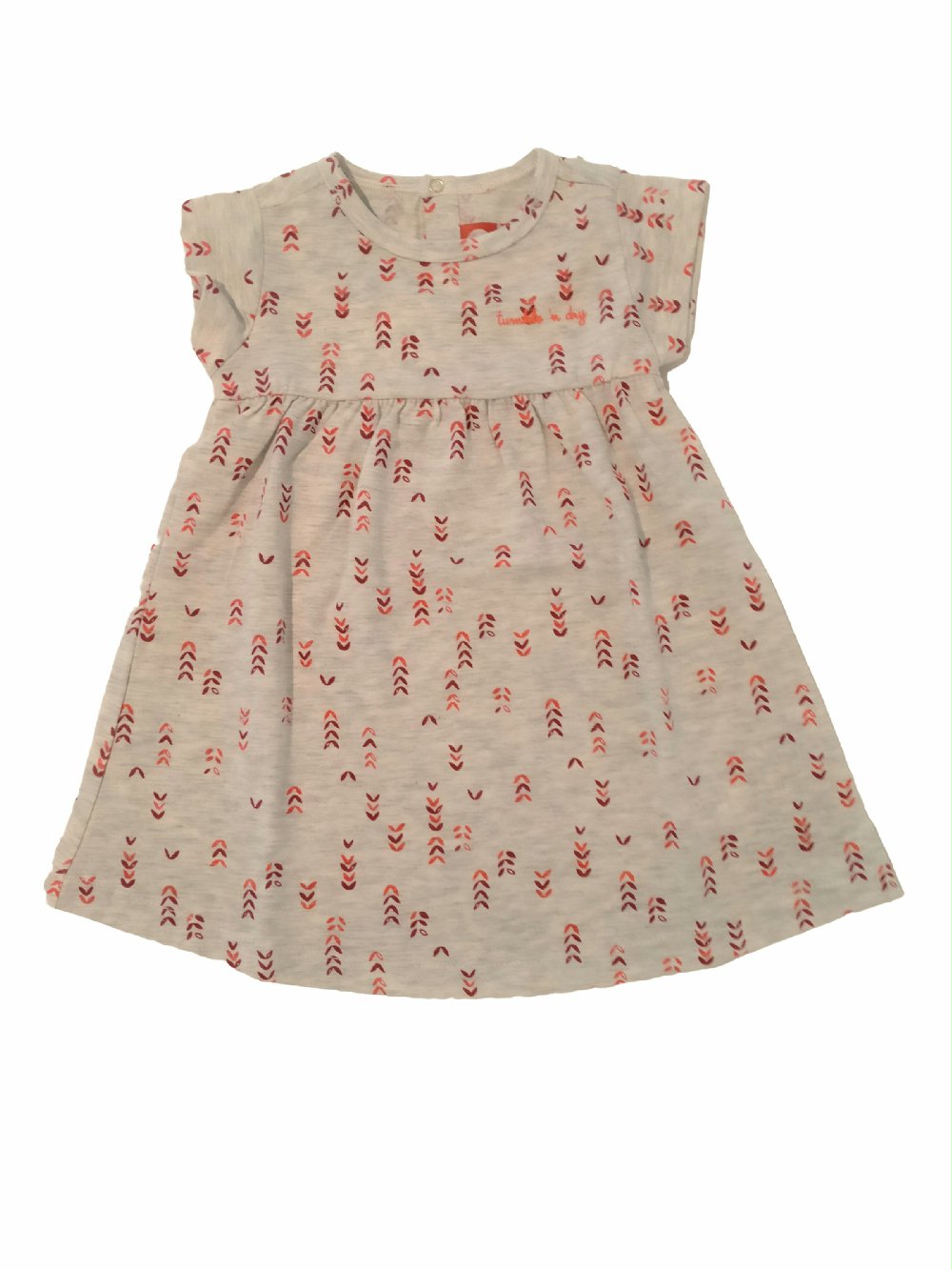 Abito baby a manica corta in cotone fantasia ecrù melange.