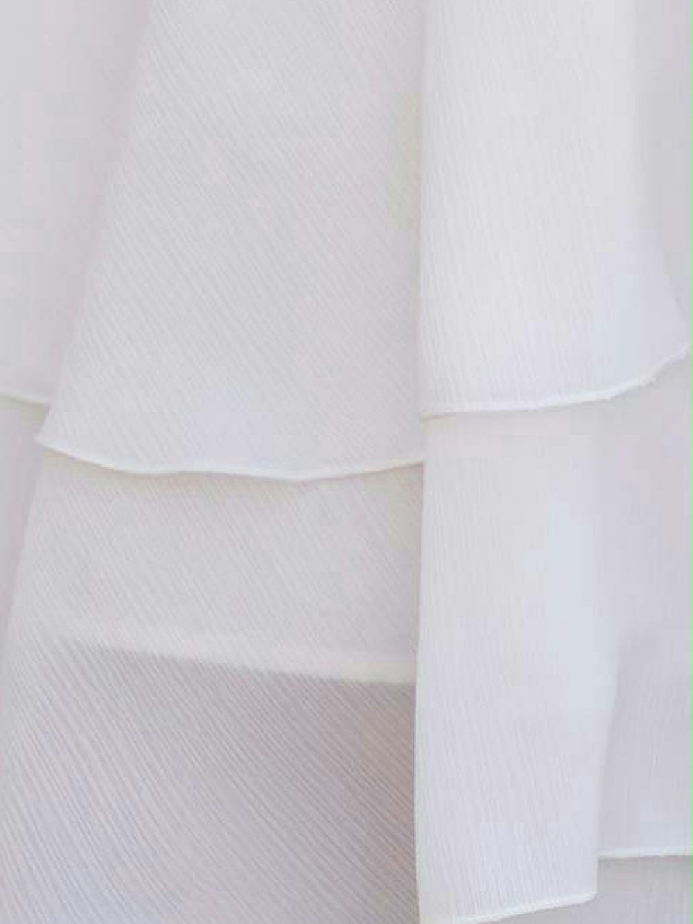 Abito da cerimonia smanicato in misto cotone color latte. Modello smanicato con gonna morbida, cintura in pizzo e tulle con applicazione floreale removibile e maxi fiocco sul retro. Apertura con zip invisibile sul retro.