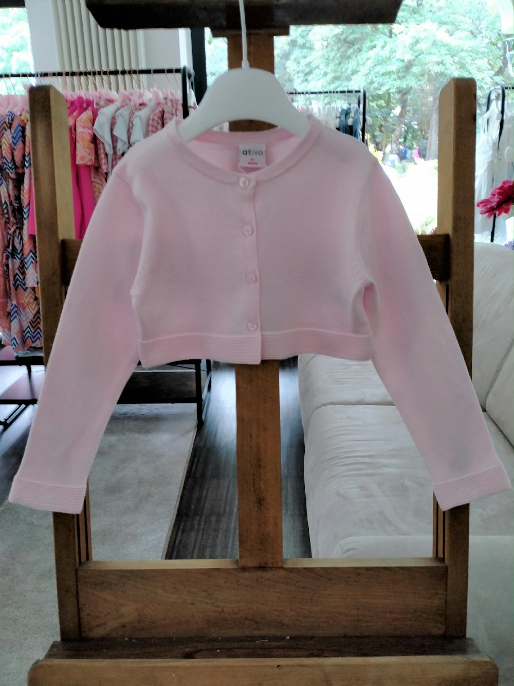 Cardigan corto in cotone elasticizzato, allacciatura a bottoni.