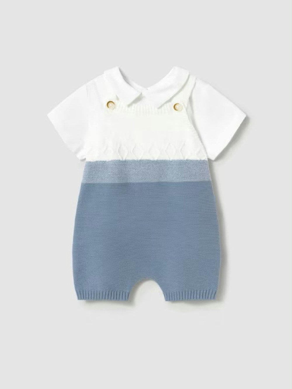 Scegli il meglio per il tuo piccolo con il completo tricot di Mayoral Newborn! Un mix perfetto di eleganza e comfort: t-shirt in jersey stretch con colletto camicia e chiusura con bottoni sulla schiena, abbinata a una morbida salopette tricot con pratici bottoni a pressione sulle bretelle e in vita. Un look raffinato e funzionale, ideale per ogni momento speciale. Tessuti naturali e attenzione all’ambiente per il benessere del tuo bambino.