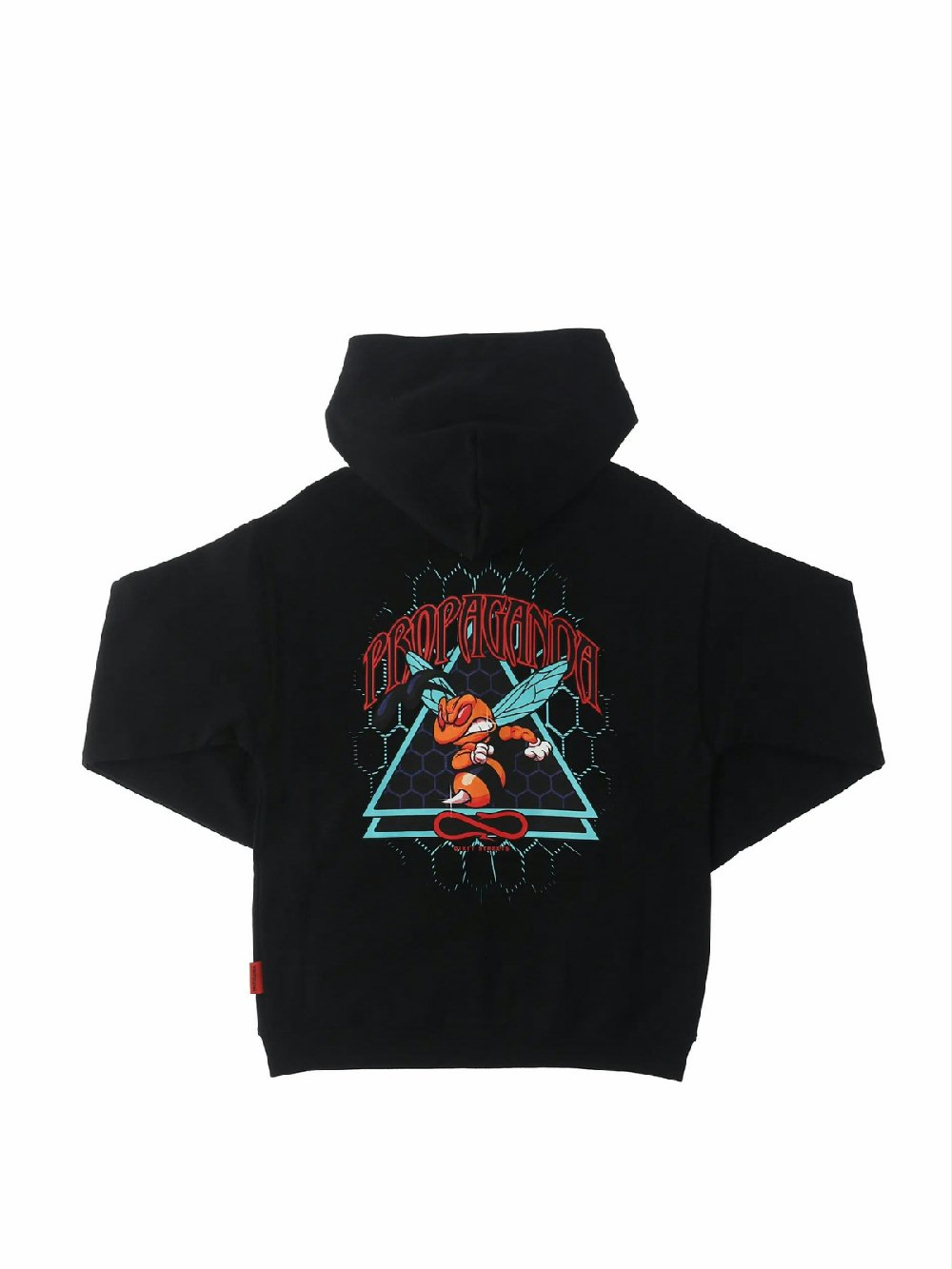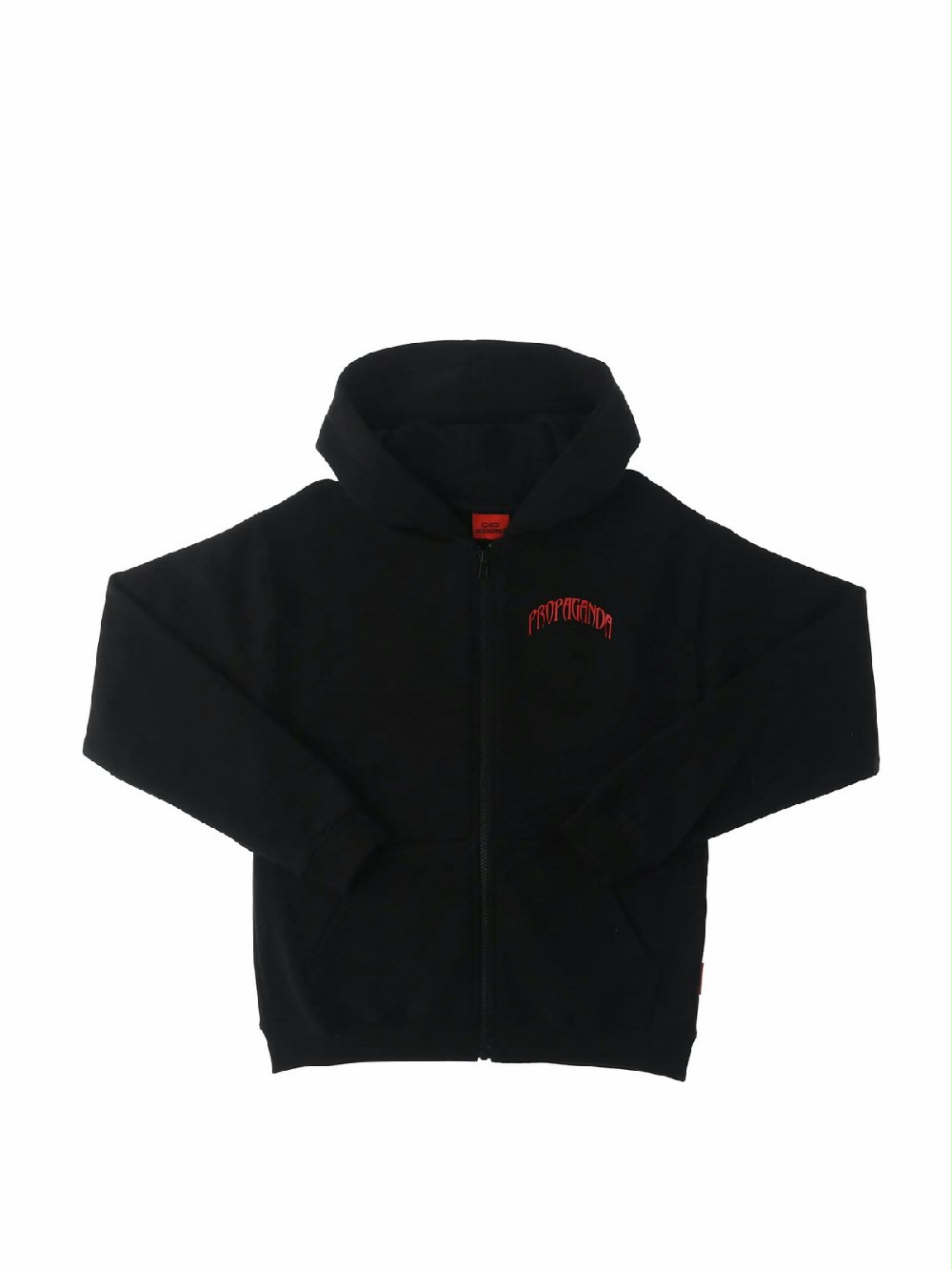 Felpa zippata con cappuccio, polsi elasticizzati, due tasche sul davanti, interno felpato, scritta logo stampata sul davanti, disegno e scritta logo stampati sul retro, etichetta con scritta logo cucita sul fianco. Made in Italy