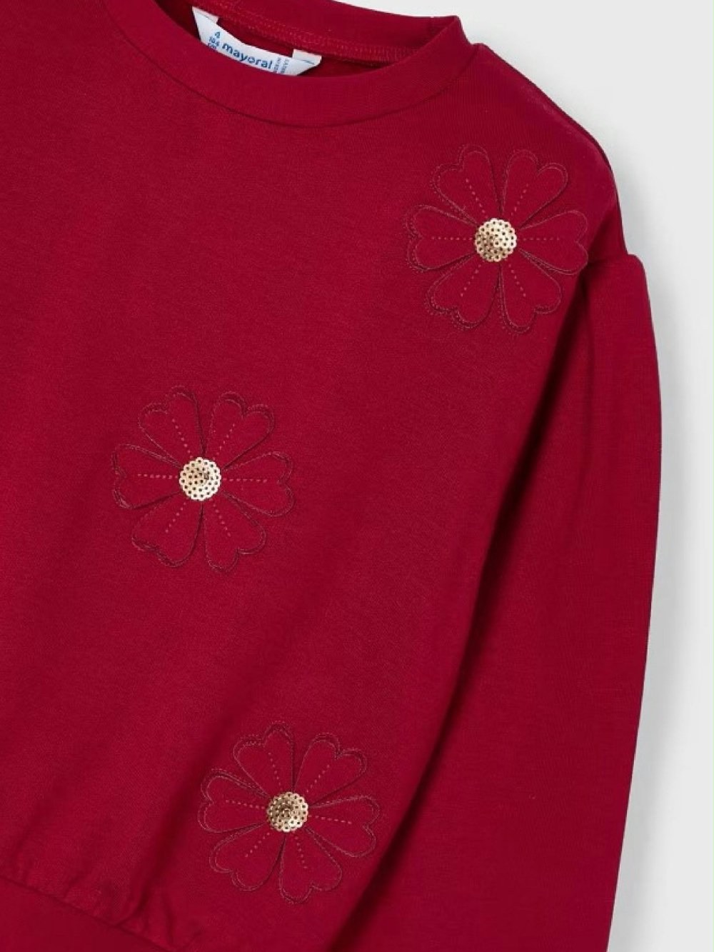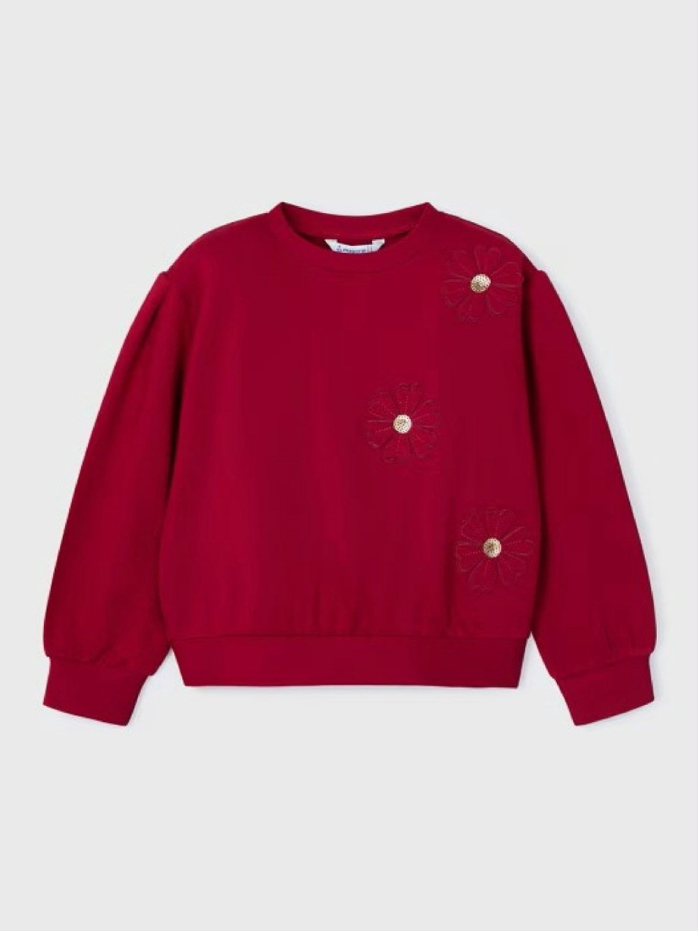 Felpa Bambina con Fiori Applicati e Maniche a Sbuffo – Morbida e Versatile – Mayoral