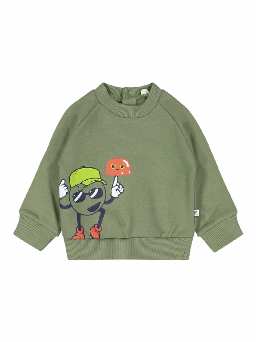 Morbida felpa girocollo di Melby peso invernale con polsi e fondo elasticizzati. Stampa video game sul davanti e bottoni a pressione sul retro per una vestibilità comoda e veloce. Perfetta per il tempo libero e l’asilo.