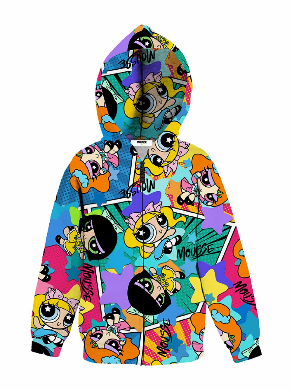 Felpa Zippata con Cappuccio – Stampa Superstars – 100% Cotone – Mousse Kids