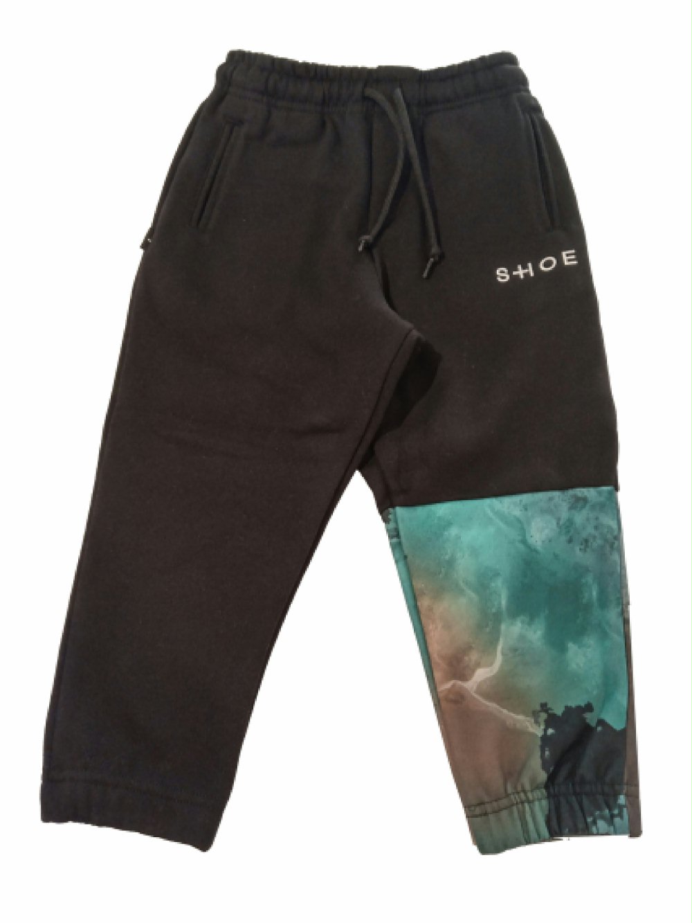 Pantalone jogger in felpa – 100% cotone – cinta elasticizzata con coulisse, tasche laterali, fondo elasticizzato, stampa “fantasia camouflage posizionata sulla gamba sinistra. Tessuto felpato, vestibilità regolare. Made in Italy.