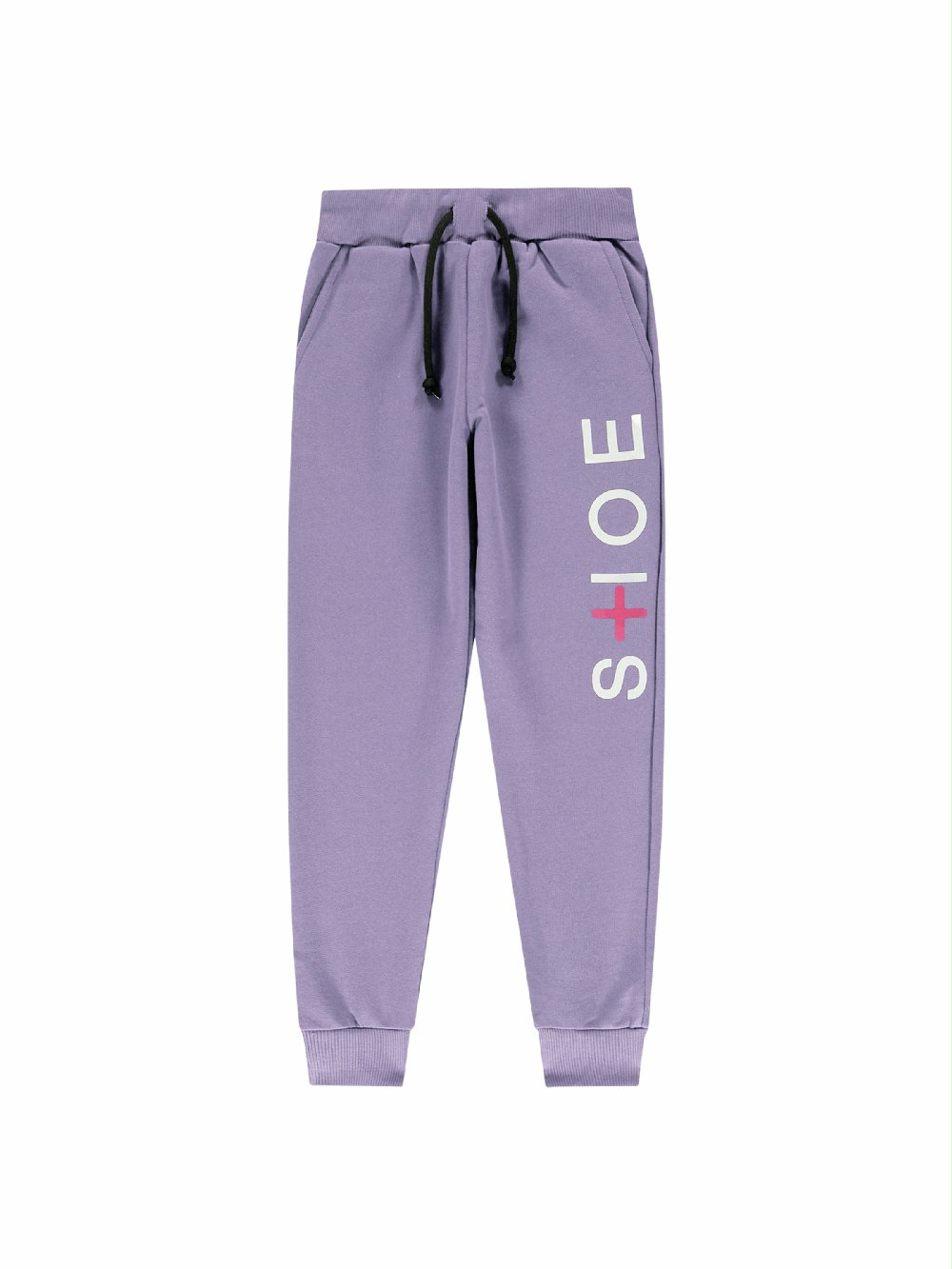 Pantalone in felpa – 100% cotone garzato – con tasche laterali e stampa logo “Shoe Plus” posizionata sulla gamba sinistra, cintura elastica regolabile con coulisse e polsini lavorati a costine. Vestibilità regolare, Made in Italy.