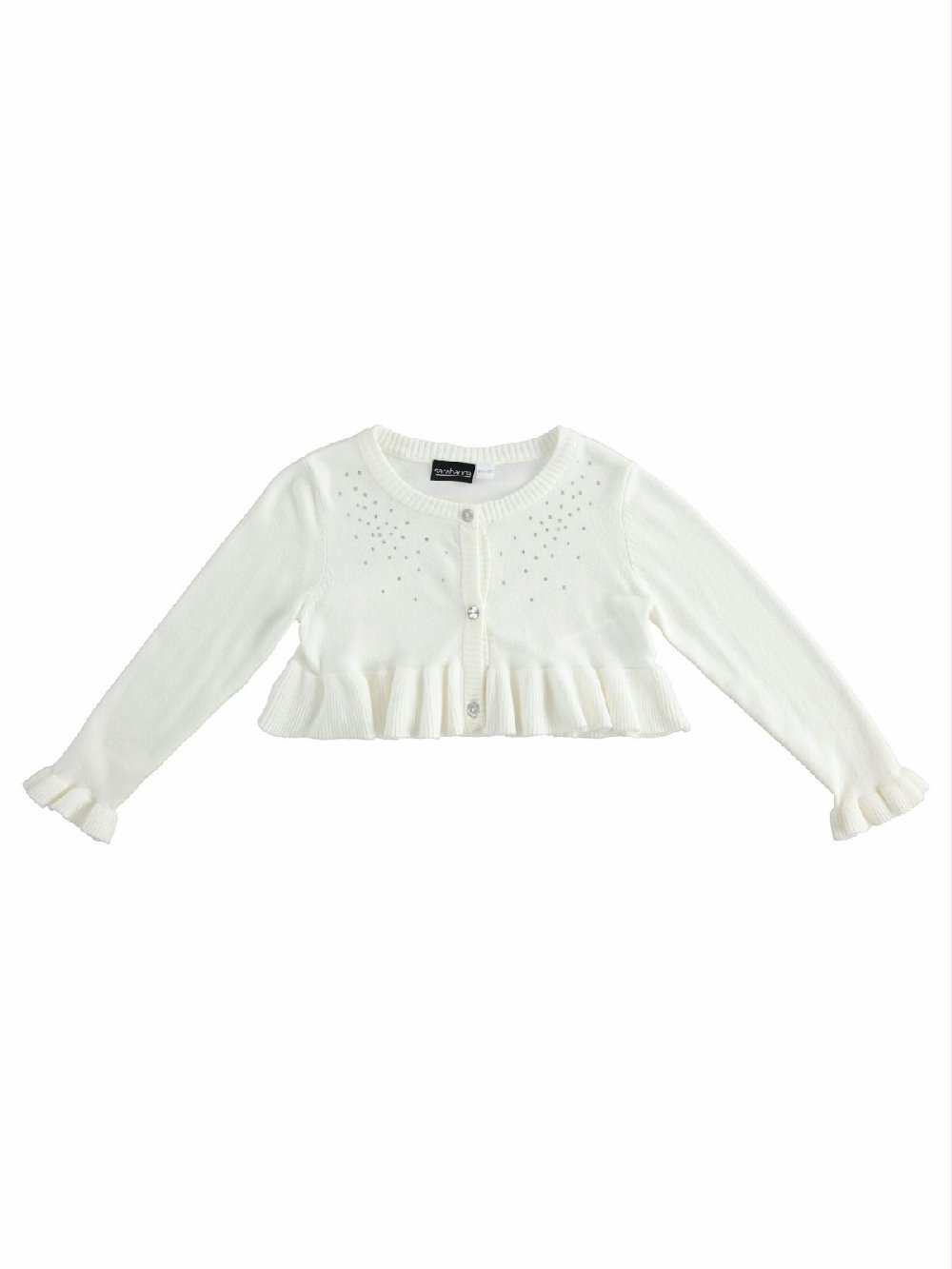SARABANDA – Scaldacuore in viscosa con applicazioni strass, allacciatura a bottoni, manica con polsino volant .