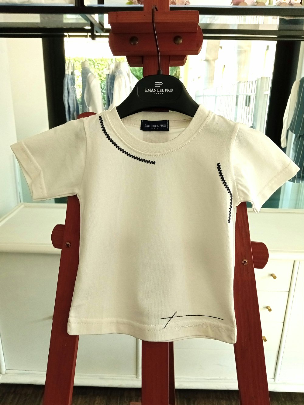 Vestire il tuo neonato con la T.shirt Manica Corta di Emanuel Pris significa garantire qualità e stile senza tempo. Realizzata interamente in Italia con cotone di alta qualità, questa maglietta presenta un’applicazione di colore blu che aggiunge un tocco di vivacità al suo outfit. Con il suo design semplice ma raffinato, è l’ideale per un look easy chic, perfetto per qualsiasi occasione speciale. Un capo esclusivo che non può mancare nel guardaroba del tuo piccolo.