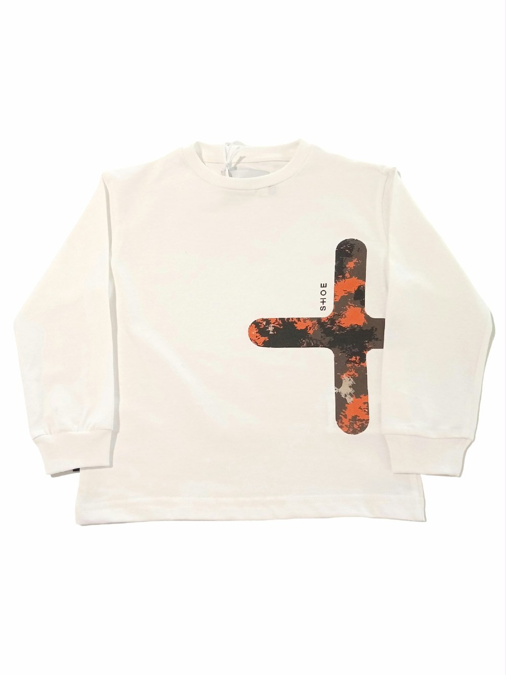 T.shirt – 100% cotone – a manica lunga con stampa “Big Plus Symbol” a fantasia camouflage. Made in Italy