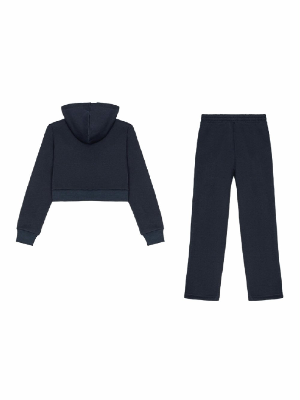 Tuta sportiva in cotone invernale per bambina: felpa corta zippata con cappuccio e tasche a marsupio, abbinata a pantaloni con cintura elastica e coulisse. Comoda, calda e perfetta per ogni giorno!